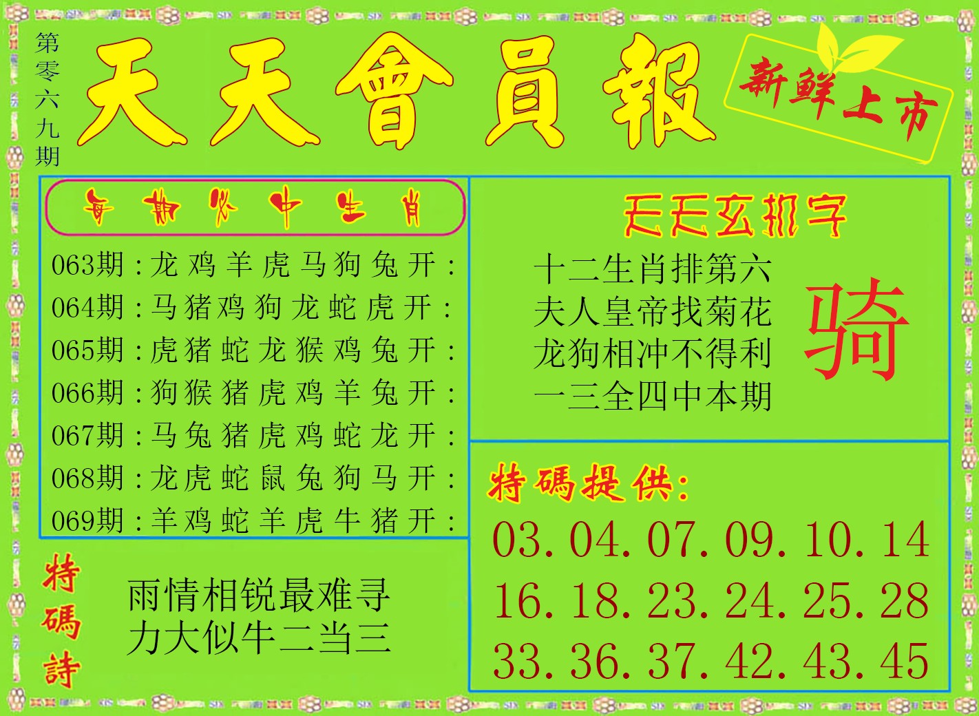 | 347期 | 鸡马牛 | 鸡蛇 | 马 |
