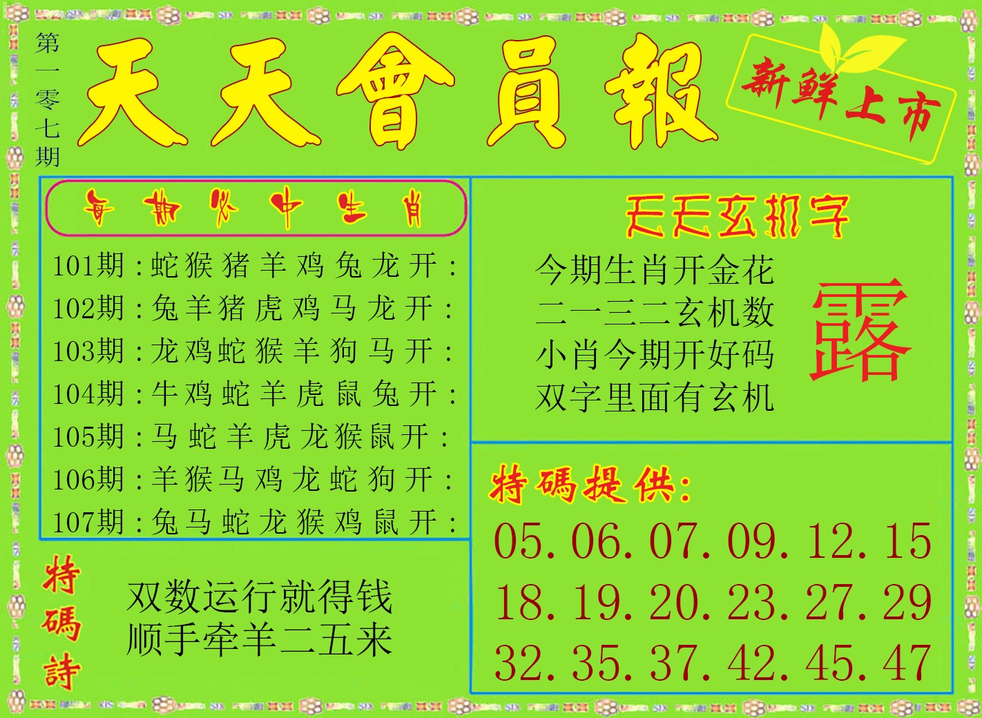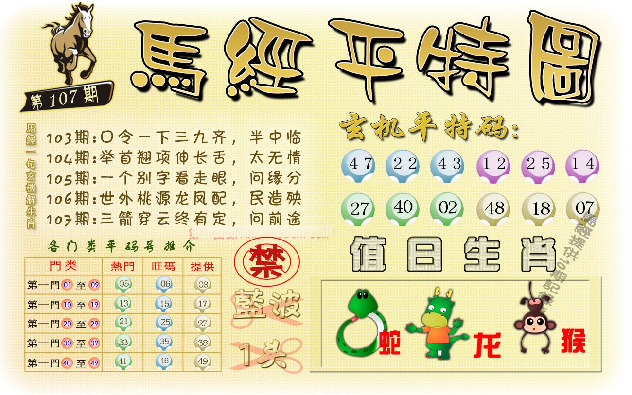 | 107期 | 蛇龙羊 | 猴兔 | 鸡 |