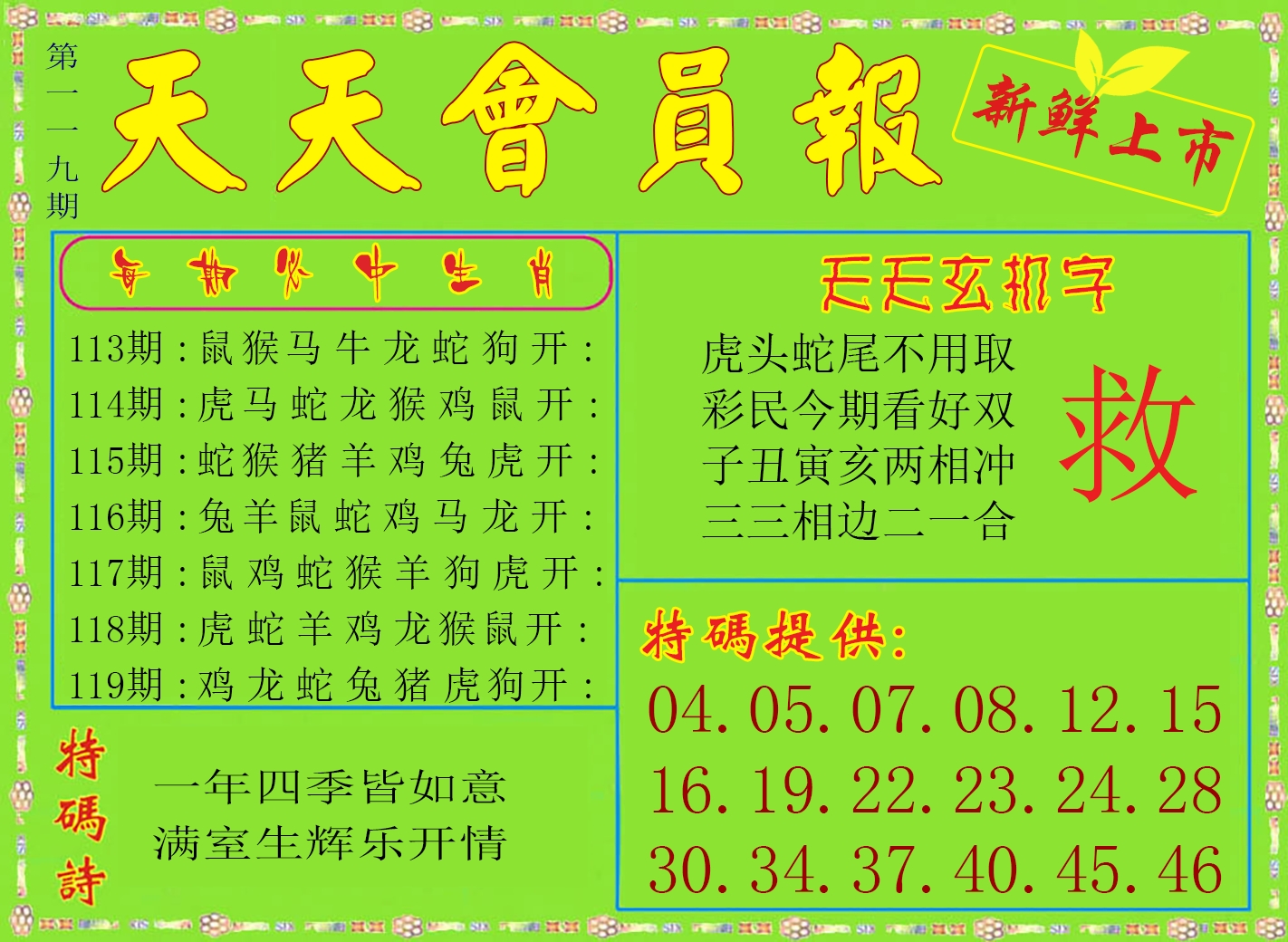 | 113期 | 猴龙猪 | 羊牛 | 蛇 |
