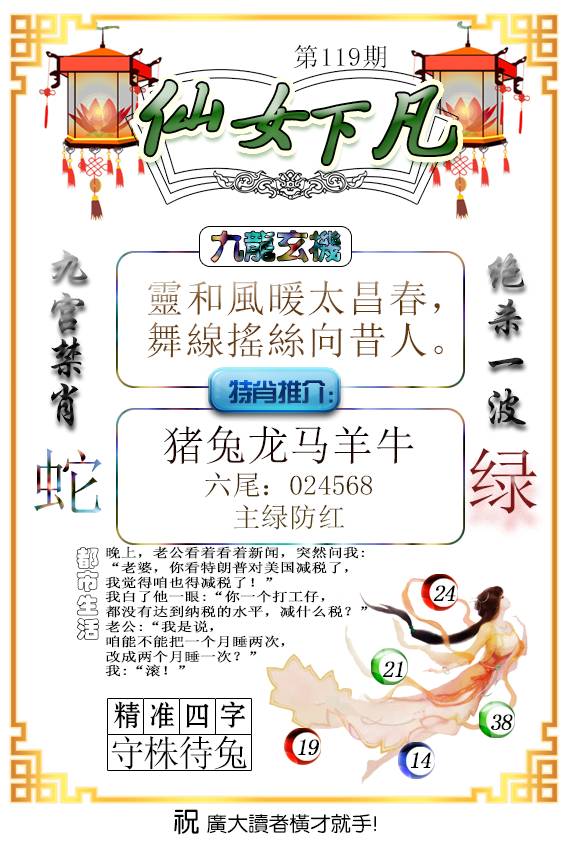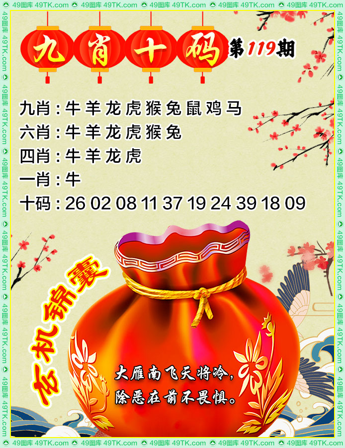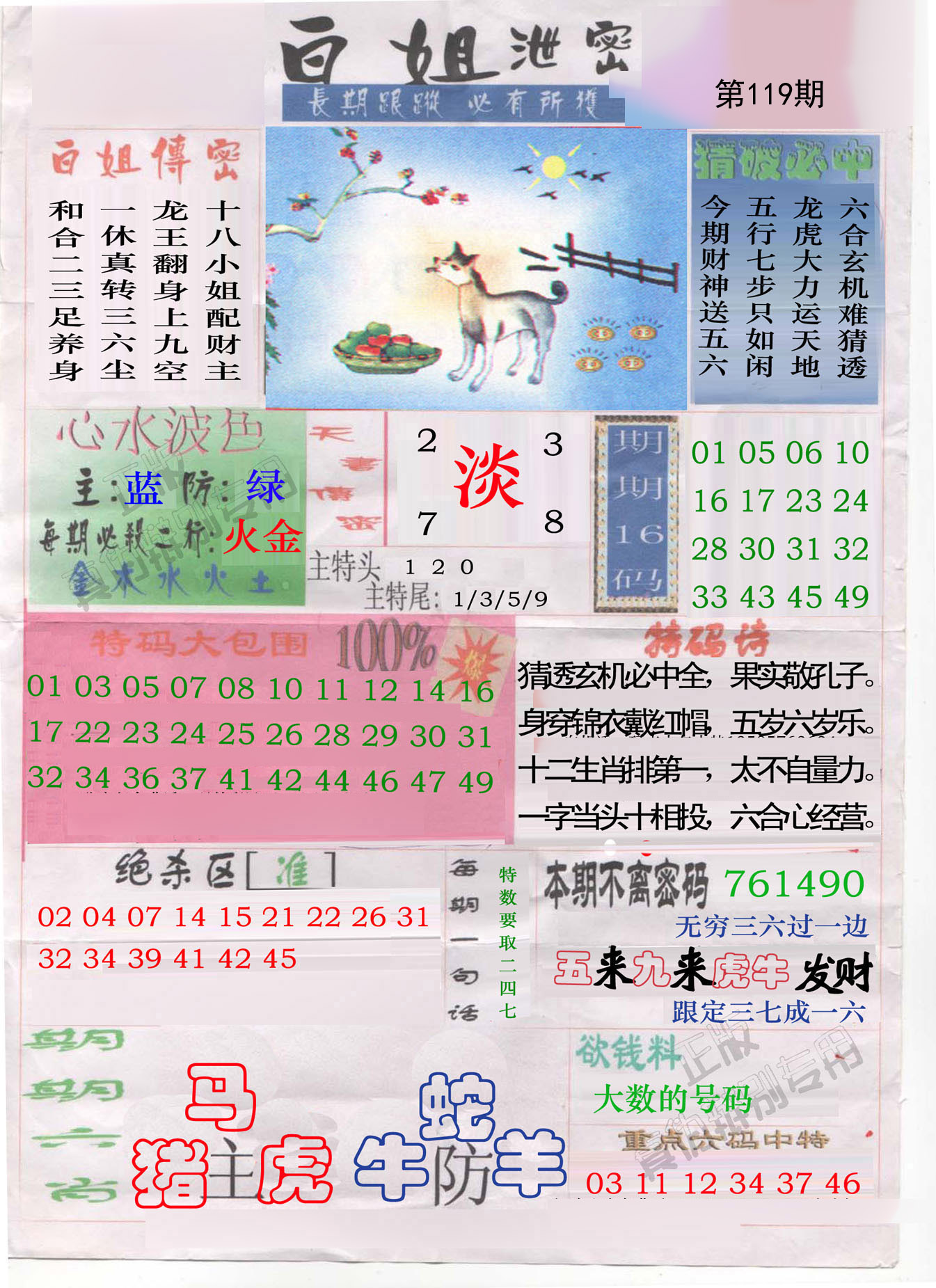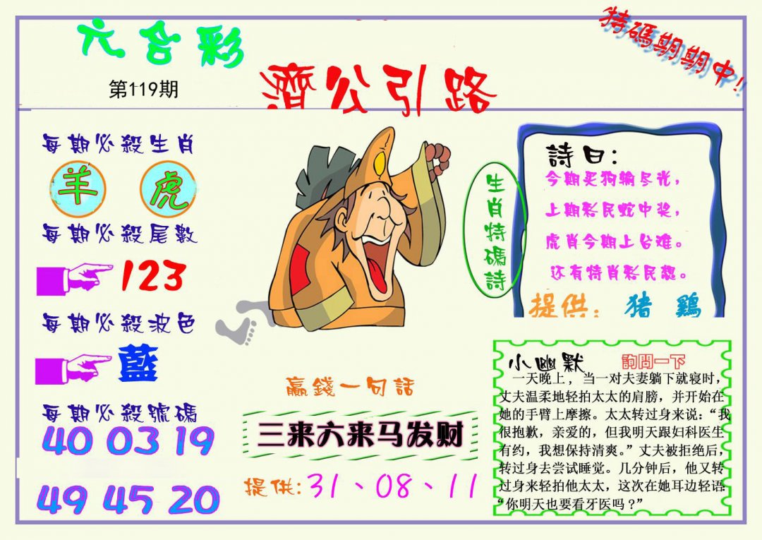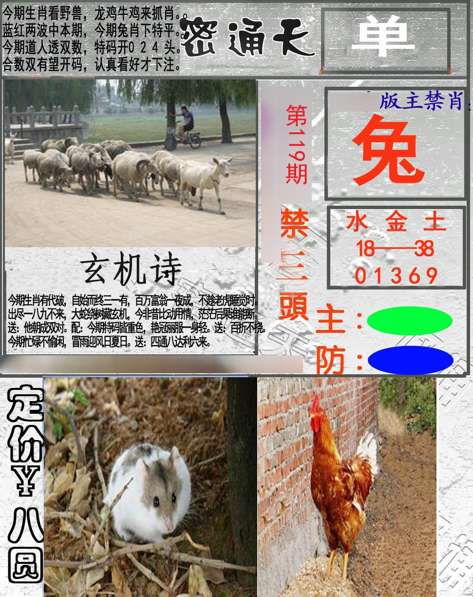 | 119期 | 虎猪鸡 | 狗羊 | 鼠 |