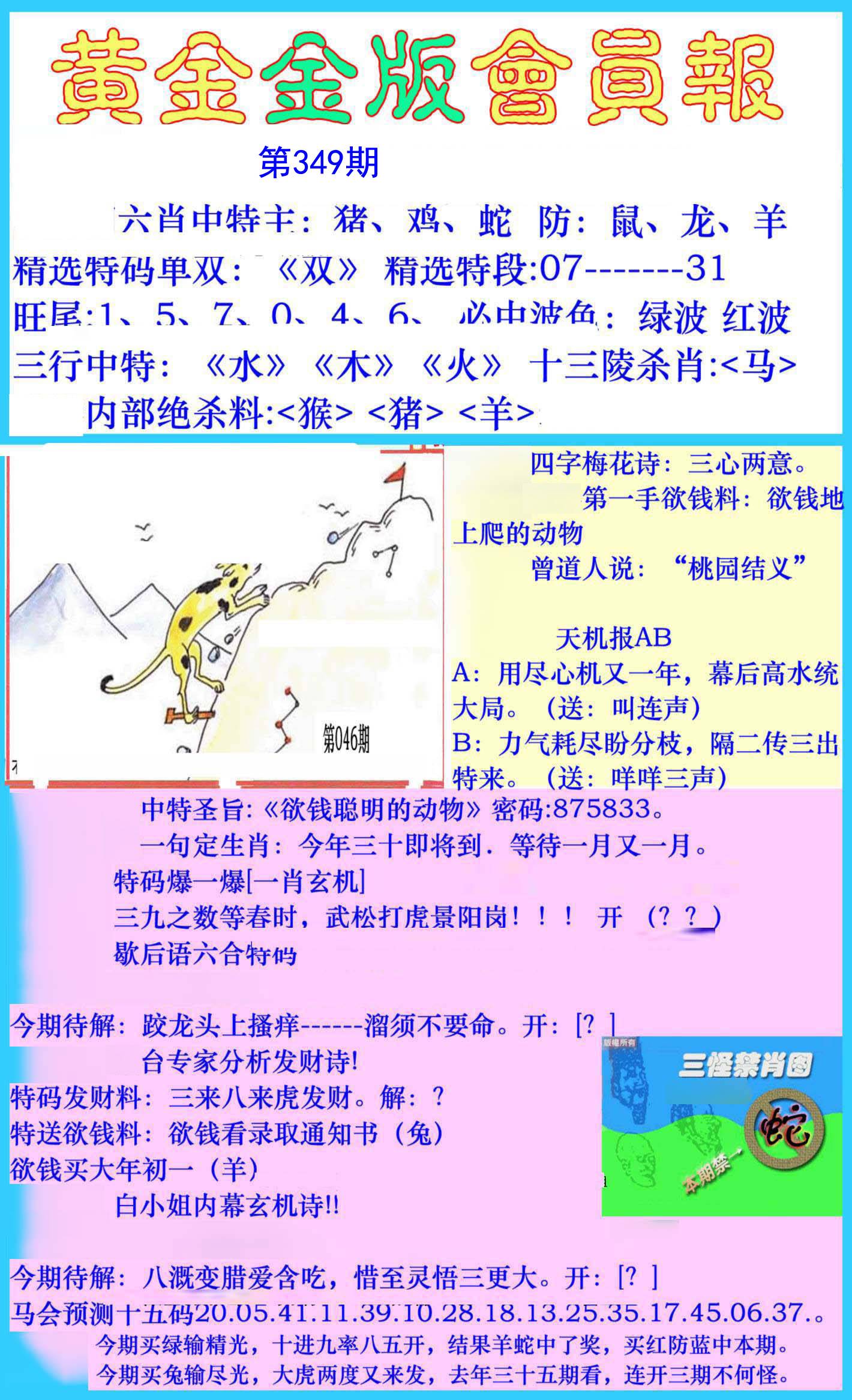 | 349期 | 猪猴鼠 | 鼠蛇 | 龙 |