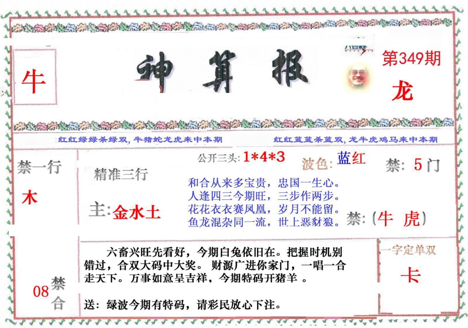 | 345期 | 狗羊蛇 | 鸡牛 | 牛 |