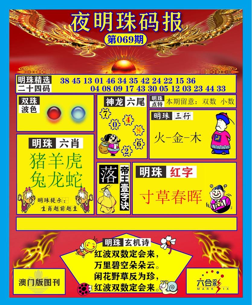 346期:幽默解析 【波色】:蓝绿 【三头】:3 0 1头 【七尾】:0 8 6 9 7 5 2尾 【平肖】:羊羊羊 【平尾】:777尾 【平码】:06 45 19 04 11 36 10 |